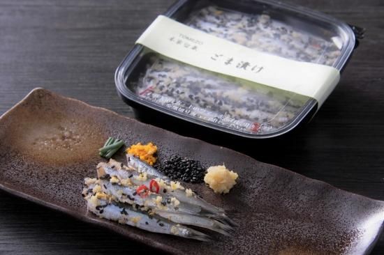 九十九里近海で獲れた新鮮なカタクチイワシを手作業で丁寧に調理し、ごま漬け用の合わせ酢と黒ごまや生姜、蜜柑の皮、唐辛子を加えて、イワシの旨みを最大限に引き出しました。