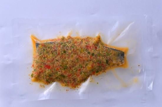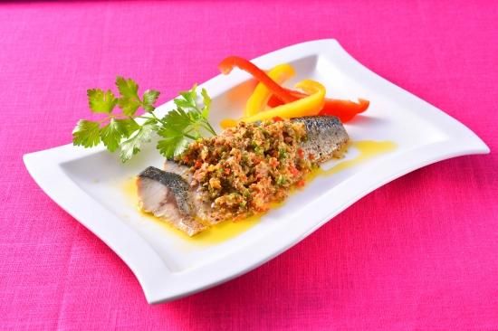 厳選された国産サバが、爽やかな酸味のラビゴットソースに包まれた贅沢な逸品です。脂の乗った旬のサバをふっくらジューシーに蒸し上げ、さらにパプリカや玉ねぎなどの香味野菜をたっぷりと使用した自家製ラビゴットソースが、味わいを引き立てます。